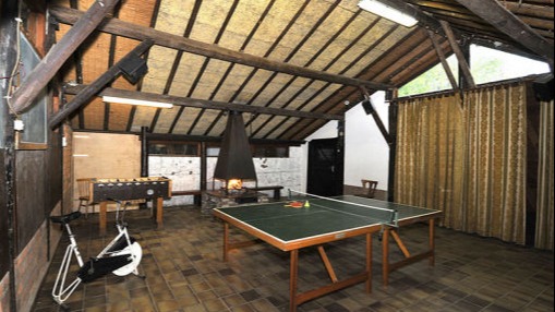 gebruik blokhut met ping pong en tafelvoetbalspel