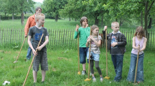 Verschillende spelonderdelen ca 6-7. ballonrennen, boomstam rollen, hemd verwisselen, sponsgooien, bekertje wip, paalgooien, tegel verleggen, lopende band , kruiwagen race, spijkerpoepen, torenbouwen, touwtrekken, zaklopen, ringwerpen, hoefijzergooien, grondomkeren, eilandverleggen, vliegend tapijt, koekhappen.