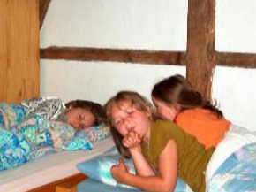 Fur 15 - 28 Personen, 4 Schlaefraume (2+2, 6, 6+2, 14 ), eigene Kuechen zur Selbstversorgung. Wir kochen aber gerne fuer Sie. Parkplatz am Haus.