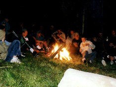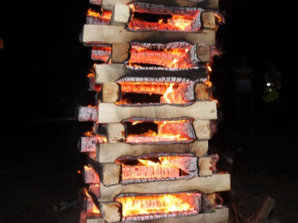 Het vuur ontwikkeld zich door de natuurlijke trek van de "schoorsteen" in korte tijd tot een "spektakelkampvuur""