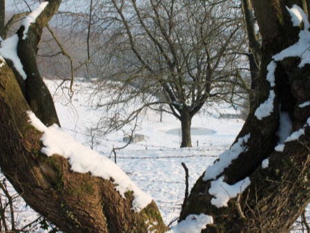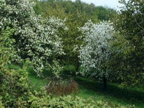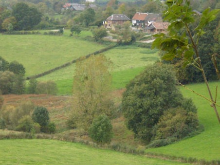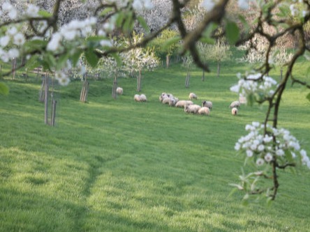 Deze plek kijkt uit over het Geuldal en over een weiland met hoogstambomen die door schapen begraasd wordt en waar de natuur voorrang heeft.