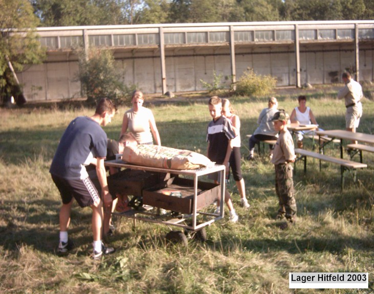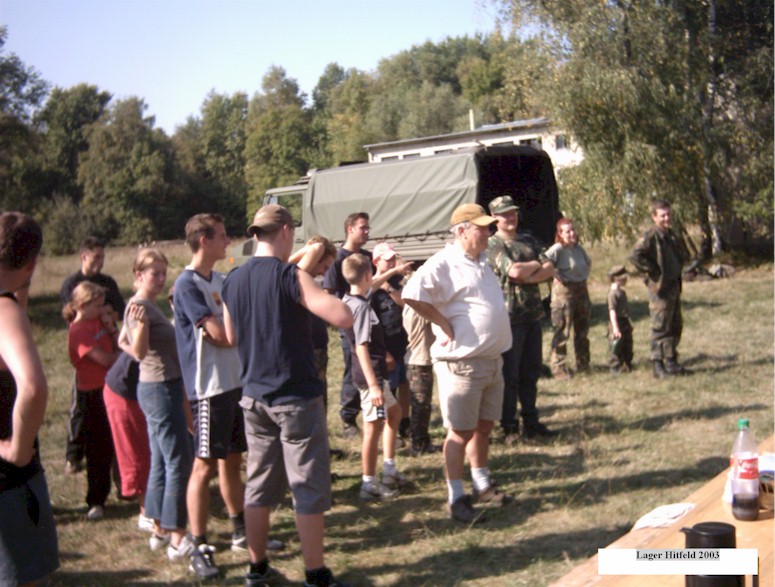 Enkele foto's die genomen zijn tijdens het jeugduitstapje vorig jaar september 2003, in een verlaten Belgisch legerkamp in de buurt van Aken. Het kamp heet "Lager-Hitfeld". Dit alles was mogelijk met de inzet van onze dorpsgenoot, adjudant Claus Neuville. Ook in 2004 zal naar alle waarschijnlijkheid weer een jeugduitstapje georganiseerd worden in dezelfde opzet als vorig jaar.
