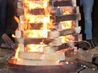 Het vuur ontwikkeld zich door de natuurlijke trek van de "schoorsteen" in korte tijd tot een "spektakelkampvuur""